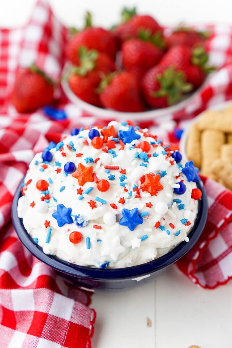 3-Ingredient Champagne Cake Dip is an easy no-bake dessert to whip together for New Year’s Eve, Valentine’s Day, or bridal showers. Perfect for dipping strawberries, graham crackers, and pretzels!