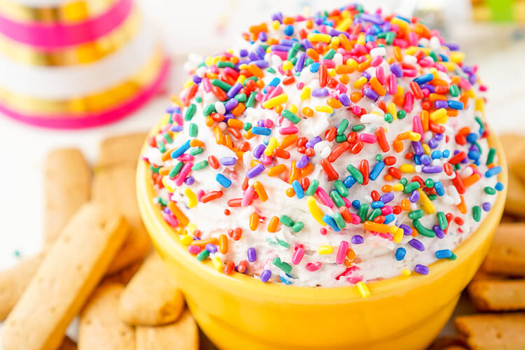 As the year and holiday season comes to a close, it’s time to slow down and unwind. Whether you’d like to bring a dish to a gathering or you’re hosting your own, this no-stress 3-Ingredient Champagne Cake Dip is a perfect addition to any New Year’s Eve celebration. Throw it together, then relax; everyone will be so excited to dig in, they won’t even care that it took all of five minutes to make.