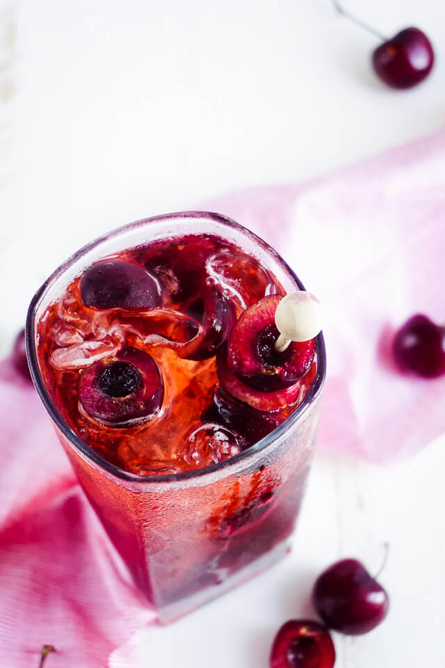 If you haven’t noticed by now, I’m kind of a fan of soda cocktails. A bright lemon lime soda like 7-Up® can really make a cocktail come to life, especially in the summer months. Speaking of summer, how about those cherries everywhere right now? I seriously can’t get enough of them and the idea of a Cherry 7 and 7 sounded like a fantastic one! The fresh cherries and cherry liqueur blend beautifully with the Jameson® and the 7-Up® spritzes things up a bit for a fun and fruit cocktail with a smooth whiskey finish.