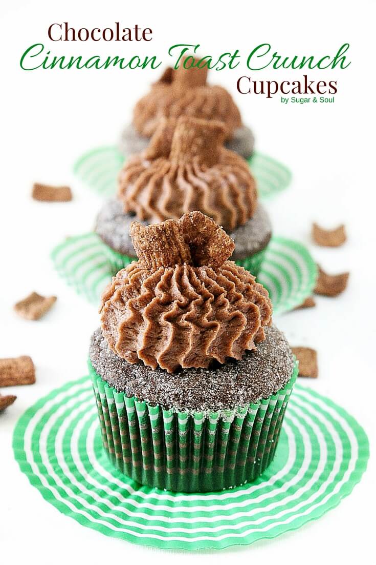 - Chocolate Cinnamon Toast Crunch Cupcakes – Rich chocolate cupcakes dipped in cinnamon sugar!