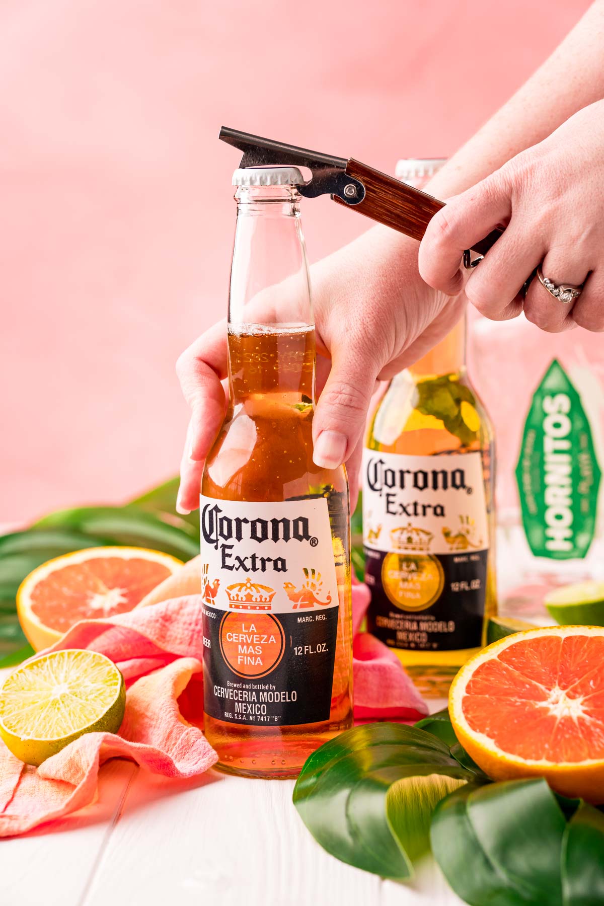 - Corona – This beer is both the base of the drink and the bottle, which is the vessel you’ll concoct it in.