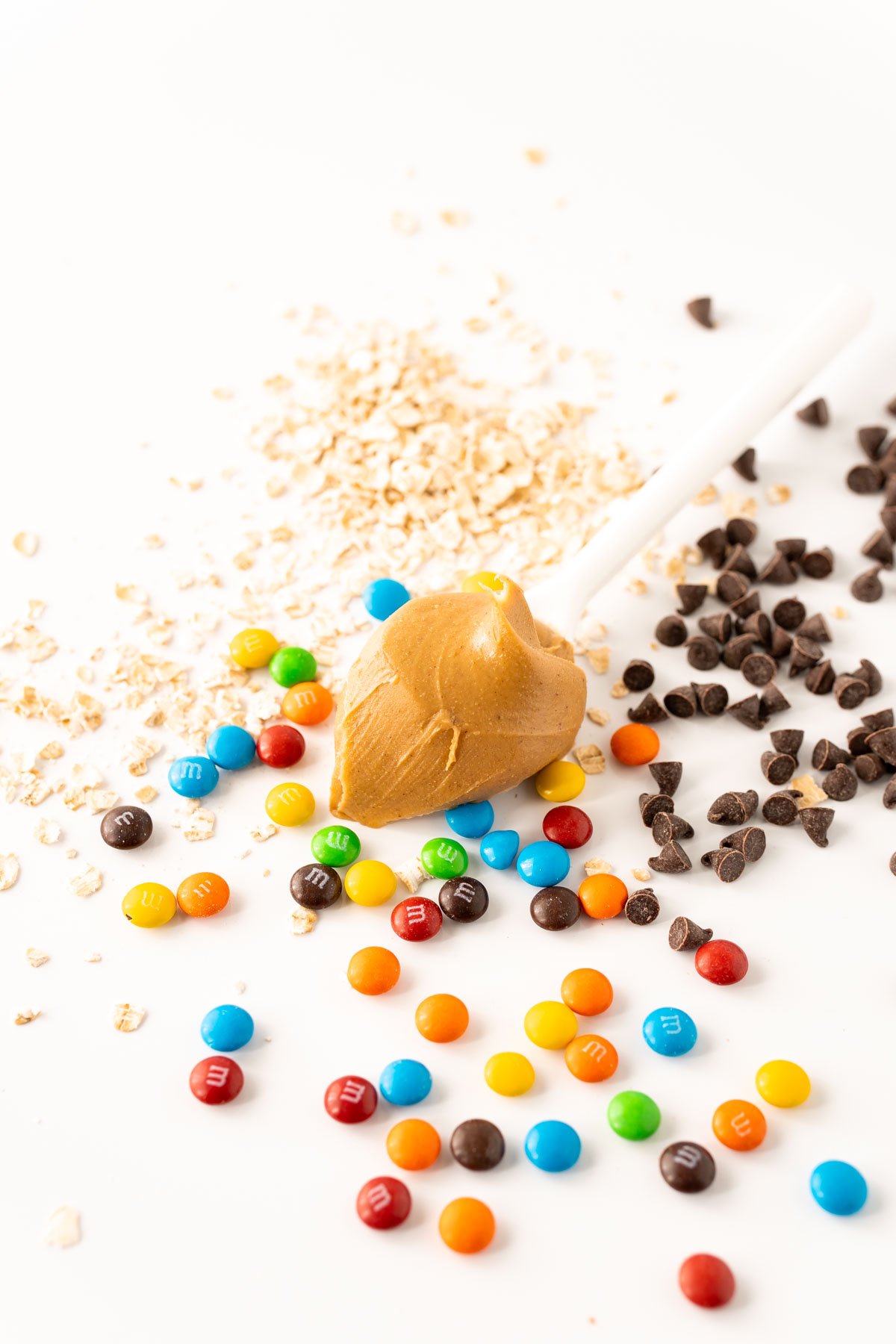 Taste: This cookie dough is sweetened with M&Ms, mini chocolate chips, and a combination of white and brown sugar, complemented by the addition of salt and creamy peanut butter, which adds a savory balance to the sweetness.