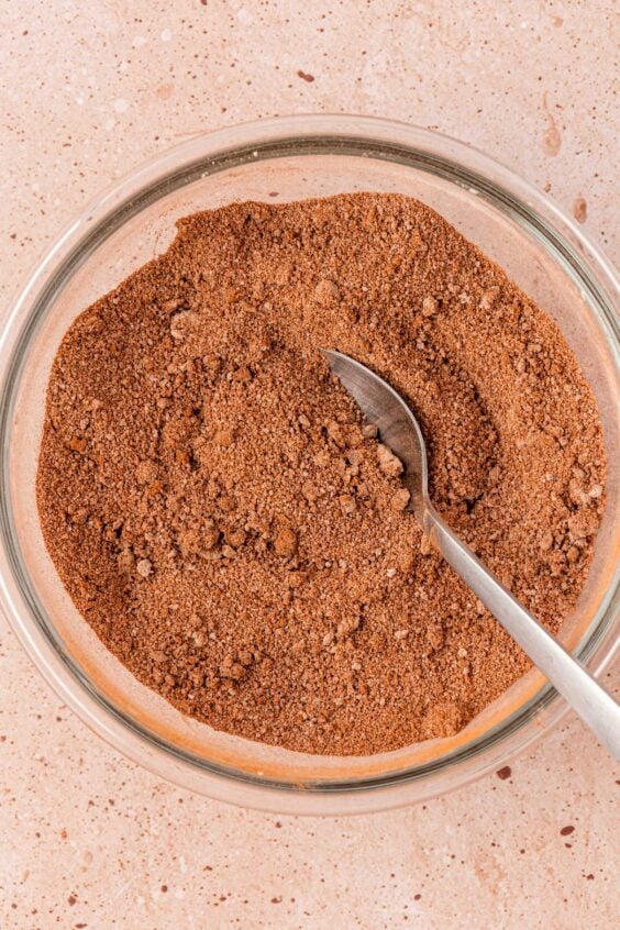 - In a medium bowl, stir together 1 cup dark brown sugar, 2 tablespoons corn starch, 2 tablespoons ground cinnamon, ¼ teaspoon ground nutmeg, ¼ teaspoon salt with a fork until mixed.