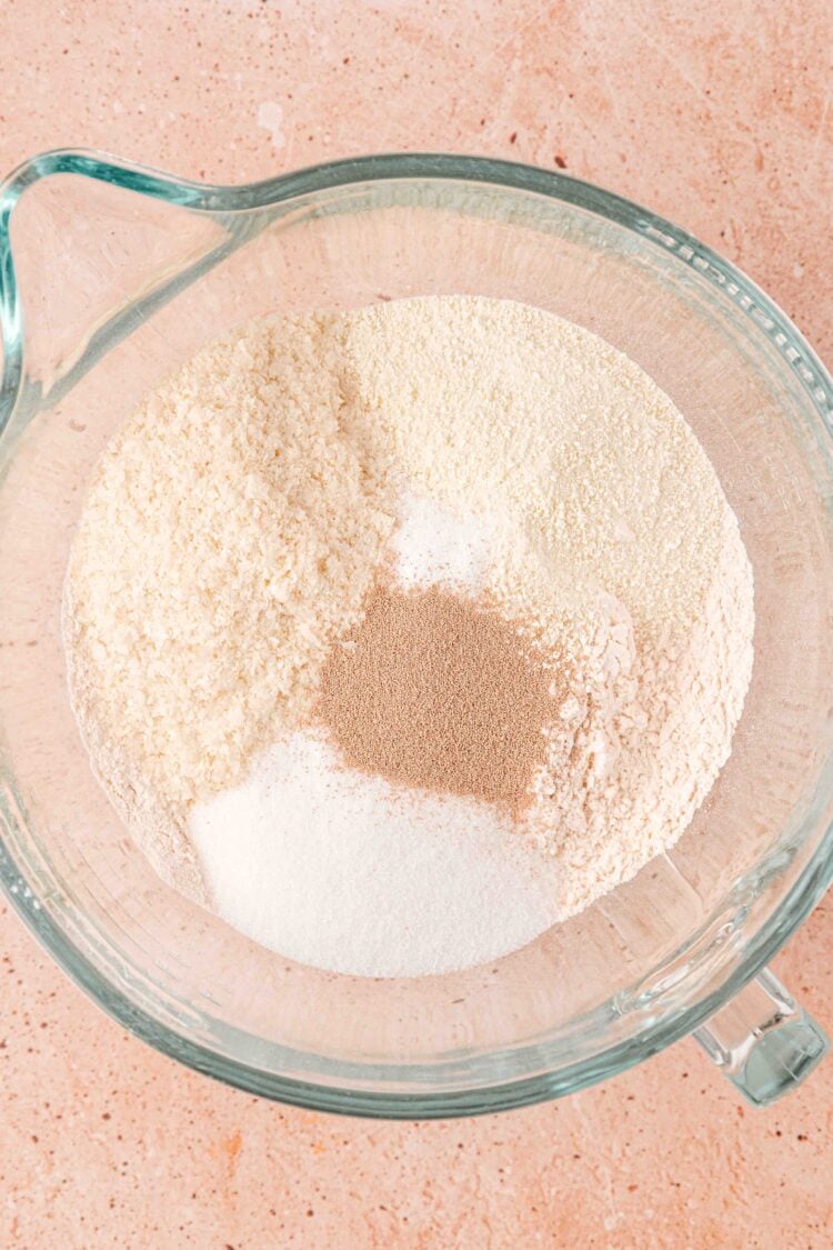 - Mix the bread flour, instant mashed potato flakes, powdered milk, granulated sugar, instant yeast, and bread salt together in a large bowl.