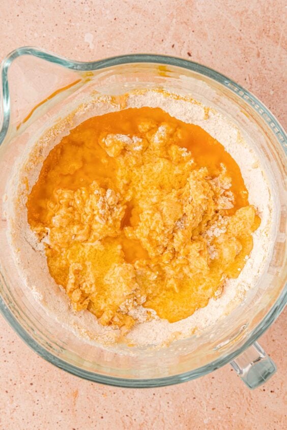 - Mix in the melted salted butter until the mixture turns to sticky dough.