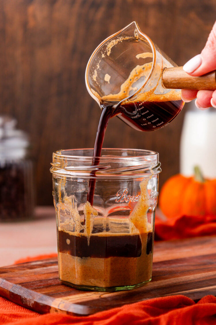 - Pour the pumpkin espresso mixture over the milk.
