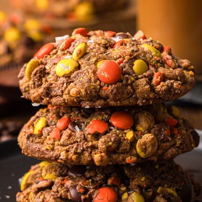 Absolutely phenomenal cookie! My wife and I both looked at each other after the first bite with a smile and knew we were in for a treat.The cookies were perfectly moist with a crunch from the Reece’s pieces. Not difficult to make. The hardest part was packing the toppings on the dough ball so it looked nice and everything was chaotically distributed the Gideon’s way.