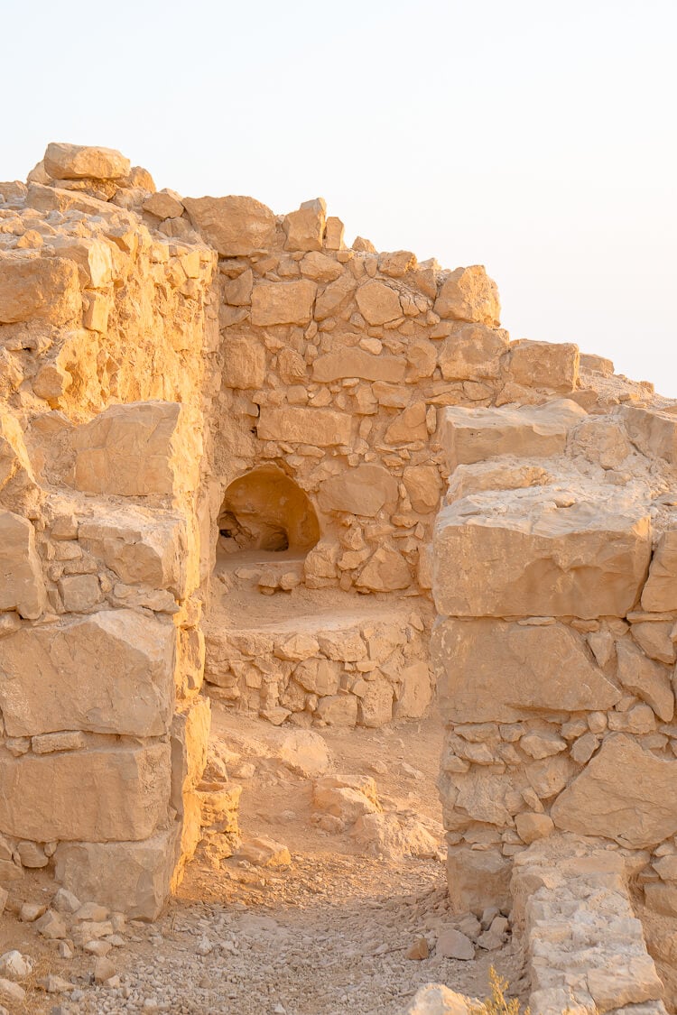 After watching the sun rise over the Moab Mountains, I had a little time to explore the ruins. It definitely didn’t feel like enough time and if you’re going on your own, I would highly recommend scheduling out an hour or two for the top to really take it all in. There are also some modern canopy structures to provide shade and during the summer months, Masada has a sound and light show a few nights a week.