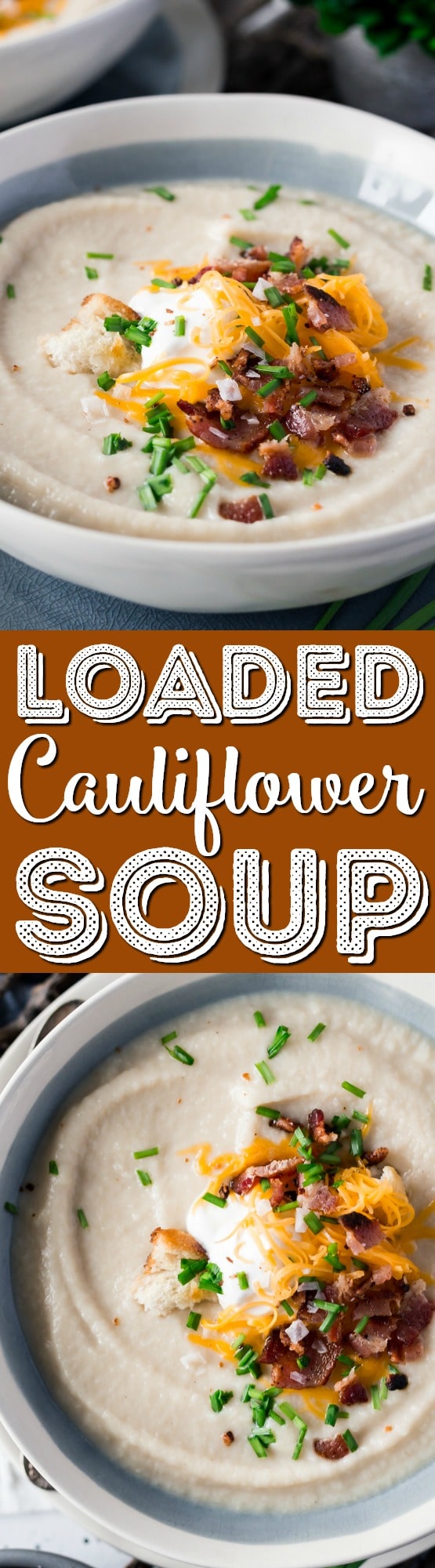 - Loaded Cauliflower Soup – Warm up with a bowl of this healthy soup that’s made of fresh cauliflower, sweet onion, and garlic!