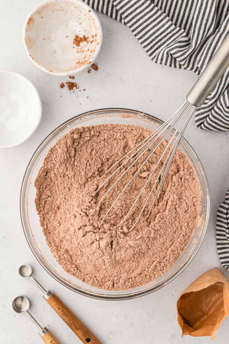 - In a medium bowl, whisk together 1¾ cups all-purpose flour, ½ cup unsweetened cocoa powder, 1 (3.4oz) box instant chocolate fudge pudding mix, 2 tablespoons powdered milk, ½ teaspoon salt, and ¼ teaspoon baking soda. Set aside.