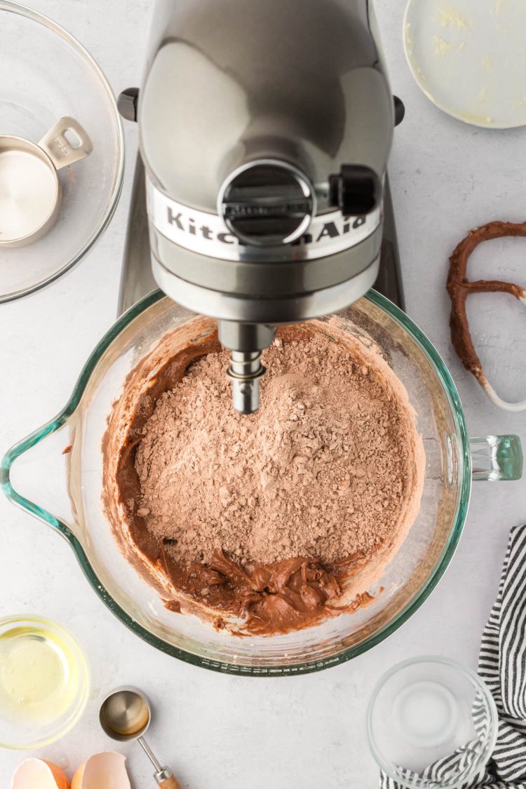 - Whisk the all-purpose flour, unsweetened cocoa powder, 1 box instant chocolate fudge pudding mix, powdered milk, salt, and baking soda together in a medium bowl. Set the bowl of dry ingredients aside.