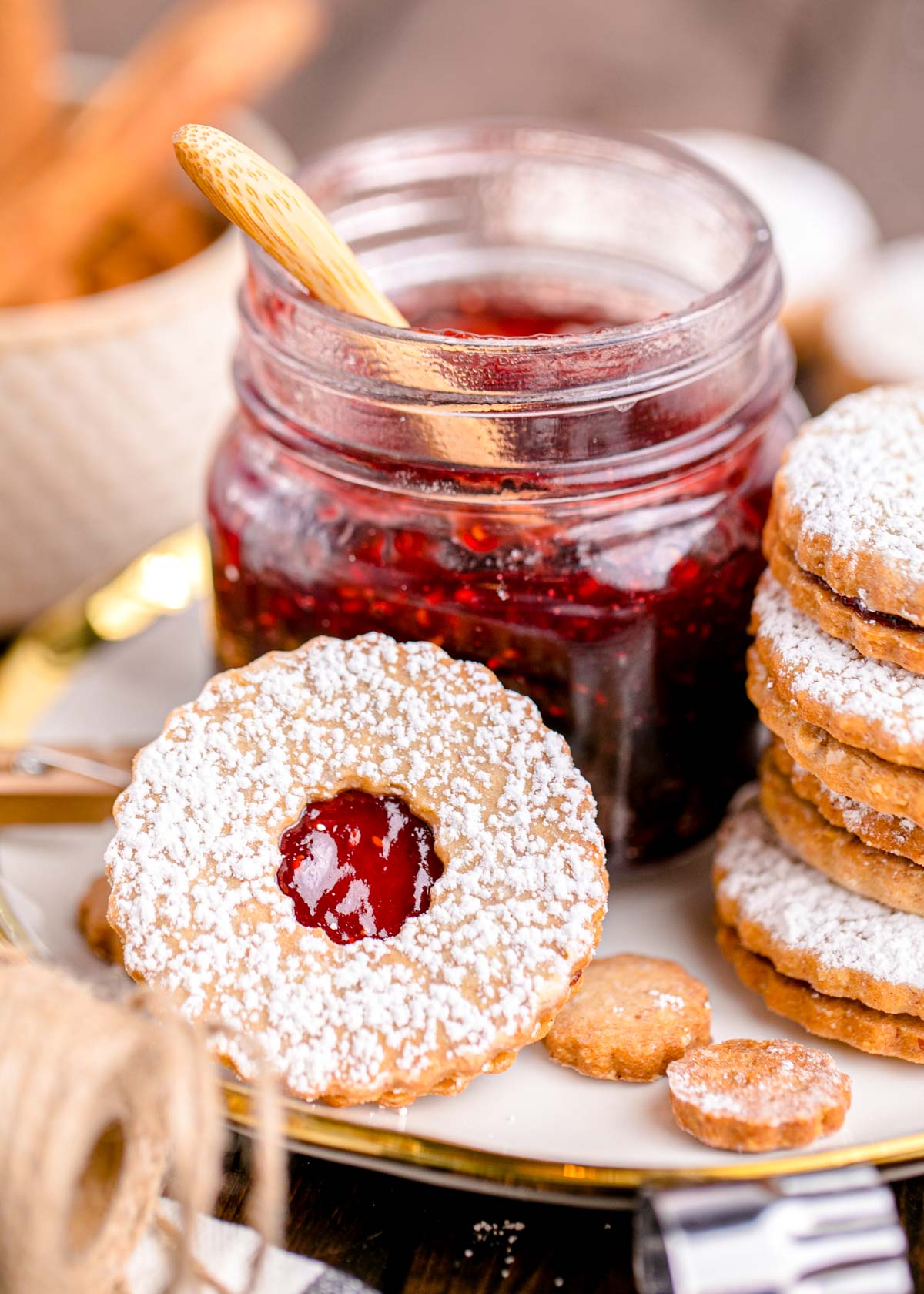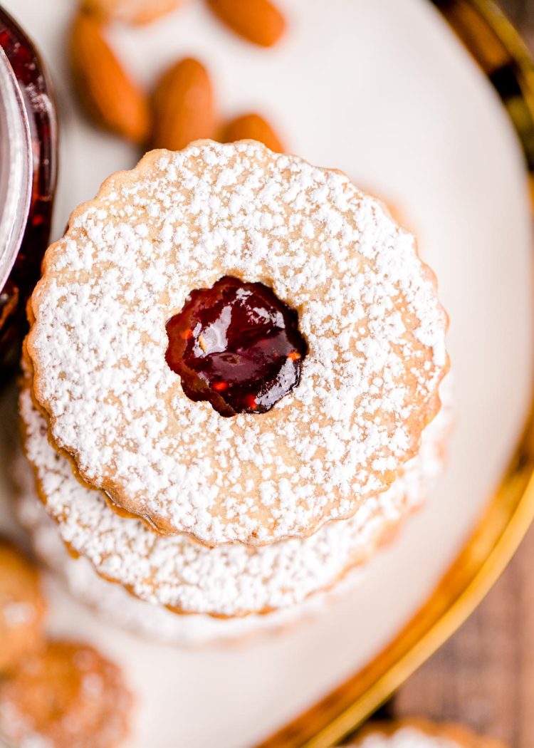 Linzer cookies originated in Austria but made their way into German bakeries in Philadelphia, making them an east coast holiday tradition! There are tons of ways to make the recipe unique, but the identifying factors of this popular cookie are: