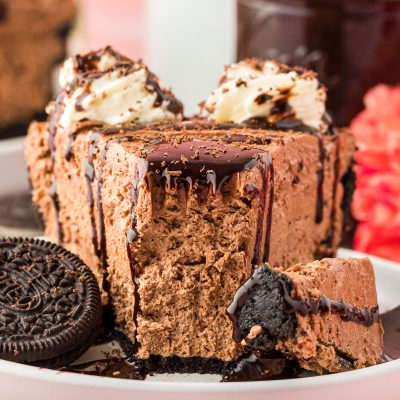 • Optional Toppings – Aside from chocolate sauce and shavings, you can top this chocolate cheesecake with crushed peanut butter cups, Reese’s Pieces, or crushed Oreos!