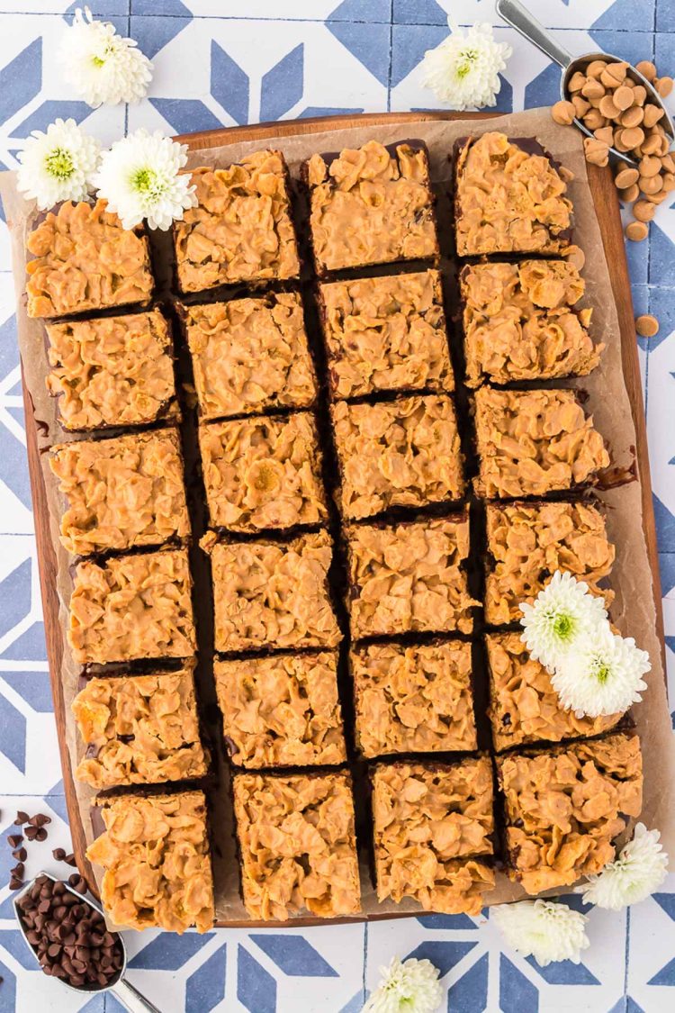 - Butterscotch – You can swap the peanut butter chips for butterscotch chips in the cornflake topping.