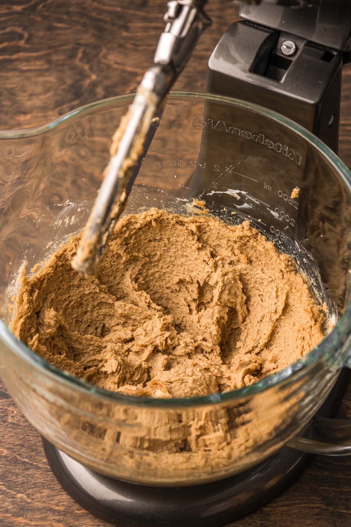 - In a large bowl or stand mixer (I highly recommend a stand mixer for this recipe) fitted with a paddle attachment, cream together 1 cup unsalted butter, 1 cup dark brown sugar, and 1 cup granulated sugar on medium speed (speed 4 on a stand mixer) for 2 minutes, scraping down the sides of the bowl halfway through.