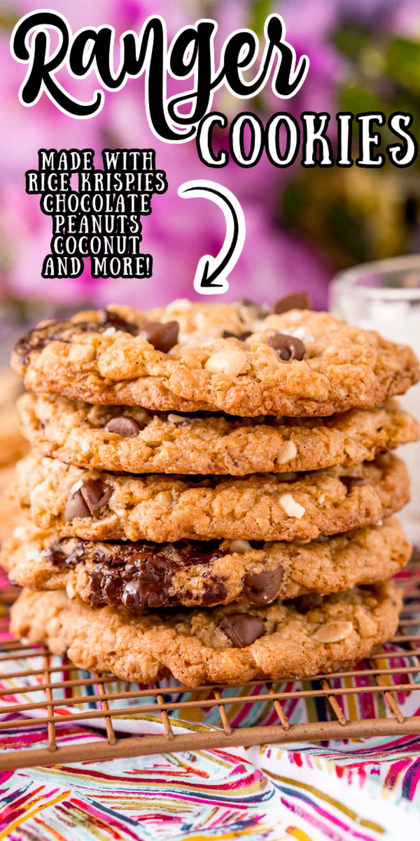 This Ranger Cookies Recipe is my favorite version of a classic! Made with oats, Rice Krispies, coconut, peanuts, and chocolate chips, these chewy cookies are filled with delicious flavors and textures!