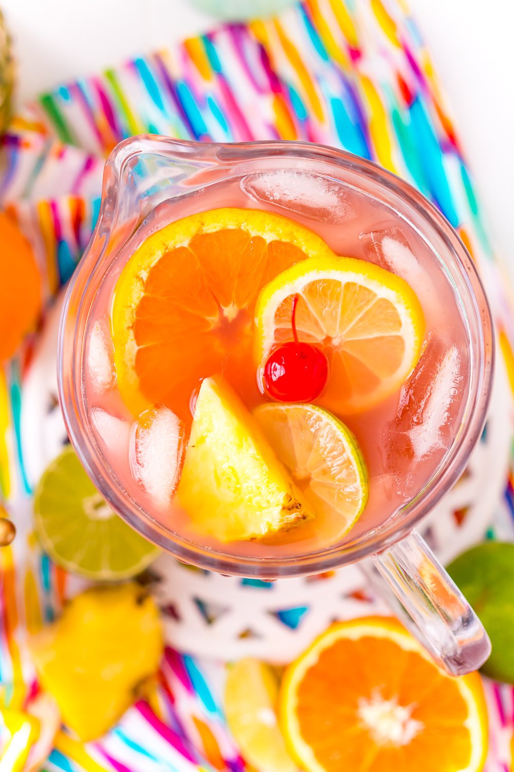 It’s a cocktail with Caribbean origins made with fruit juices, rum, grenadine, sliced citrus, and sometimes topped with soda.