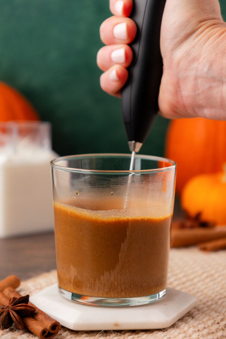 - It’s best to use a hand frother when mixing the espresso with pumpkin mixture. This will ensure the dry ingredients get thoroughly combined.