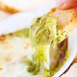 This Baked Spinach Artichoke Dip is a must have for any party, it's loaded with cheese and garlic and the recipe has two different prep methods, you can make it either hearty or creamy!